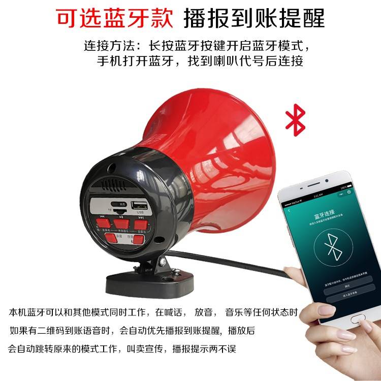 电动三轮电瓶汽车载叫卖录音喇叭摆摊卖货宣传录扩音扬声喊话器用