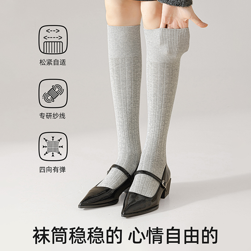 靴子jk长袜冬miu系高筒 压力长筒袜配小皮鞋 灰色小腿袜子女款 秋季