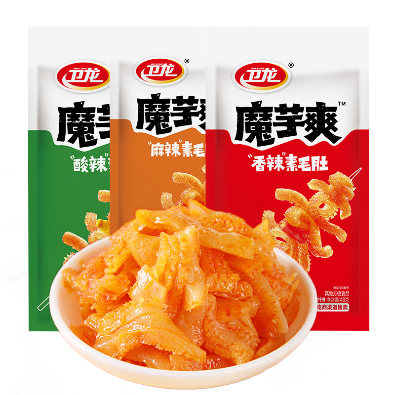 卫龙魔芋爽49g魔芋丝小包装 素毛肚辣条香辣麻辣酸辣休闲零食L
