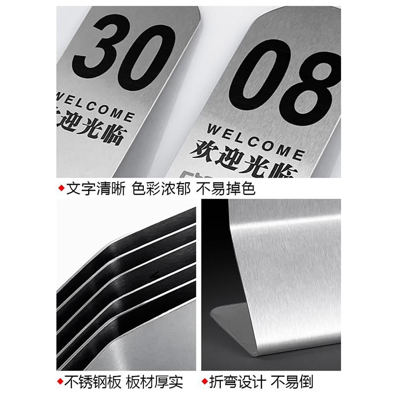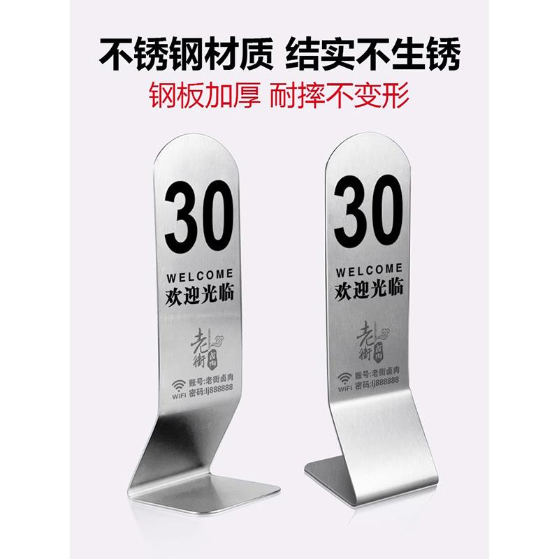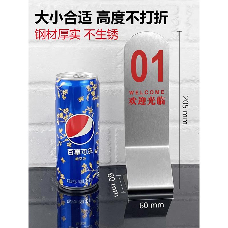 酒店桌牌排号座位 点餐牌台号餐厅牌台卡餐饮叫号出取餐定制双面定做展示饭店扫码 号码 牌不锈钢桌号牌立牌立式