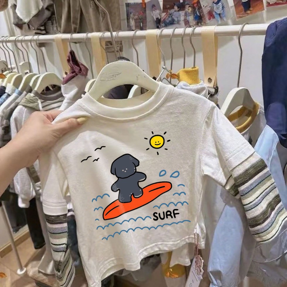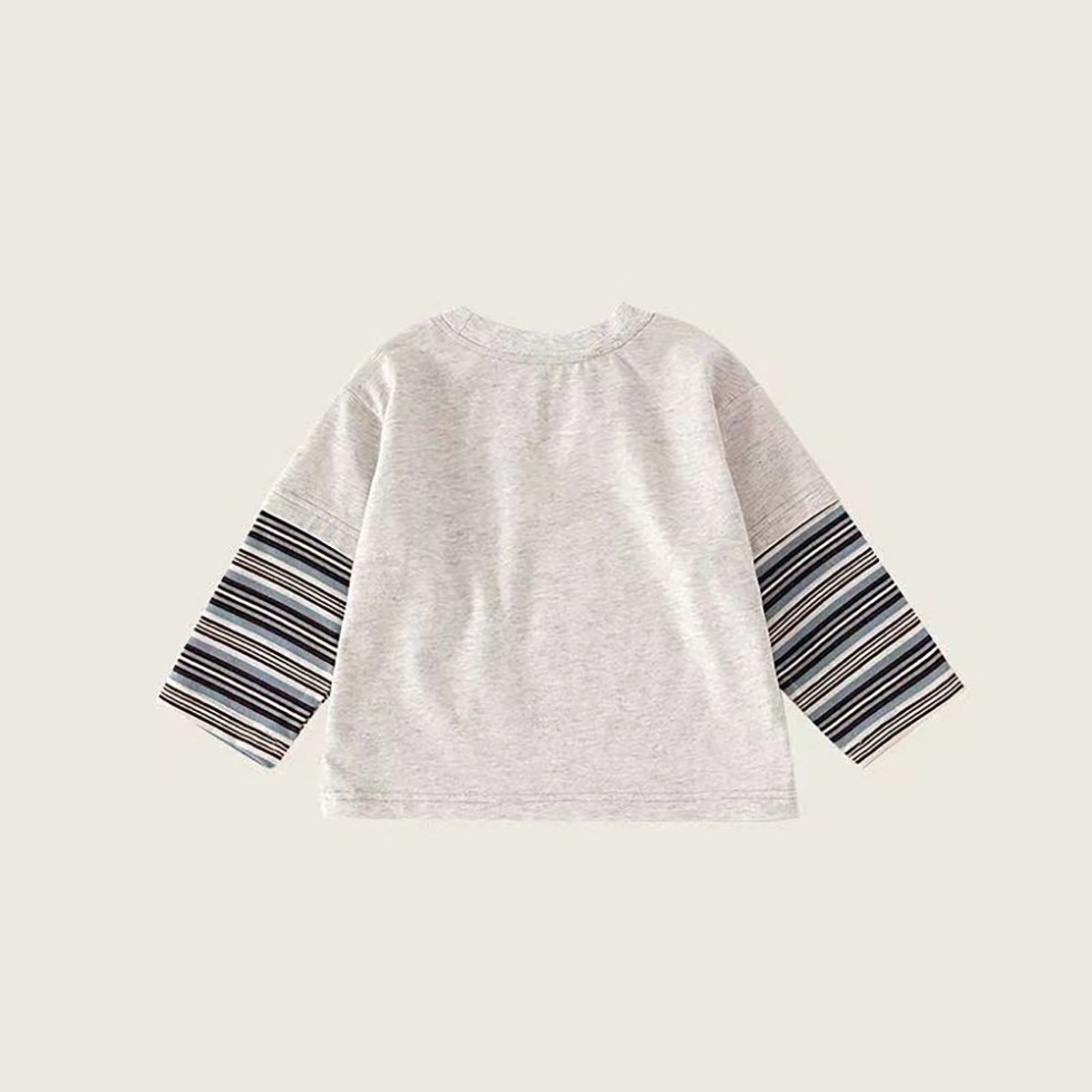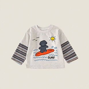 儿童宝宝条纹春秋打底上衣 男女童T恤小童长袖 纯棉假两件童装 新款