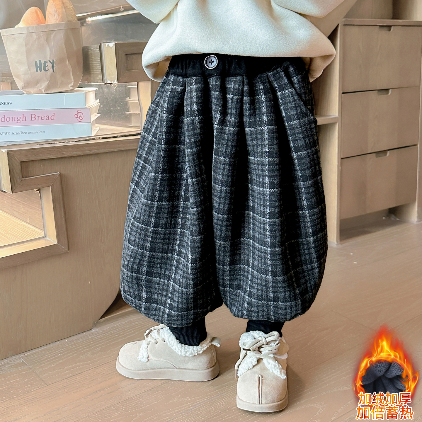 秋冬季 宝宝长裤 2025新款 冬装 洋气时髦儿童束脚格子裤 女童加绒卫裤