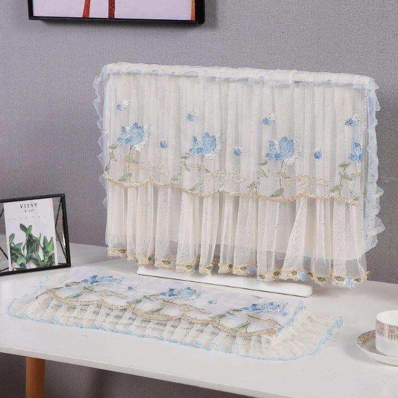 电脑布桌防尘盖布不取套台式 饰罩田园蕾丝桌面布一体机 机显示器装