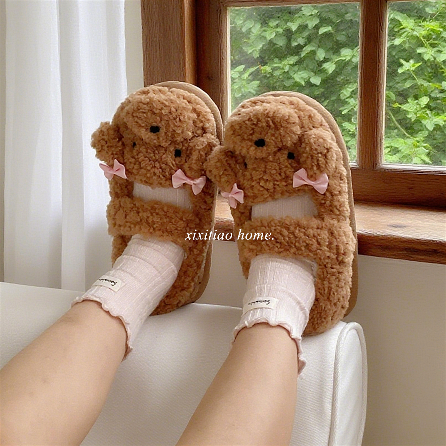 可爱蝴蝶结居家室内冬天棉鞋 棉拖鞋 保暖防滑月子鞋 新款 女士秋冬季