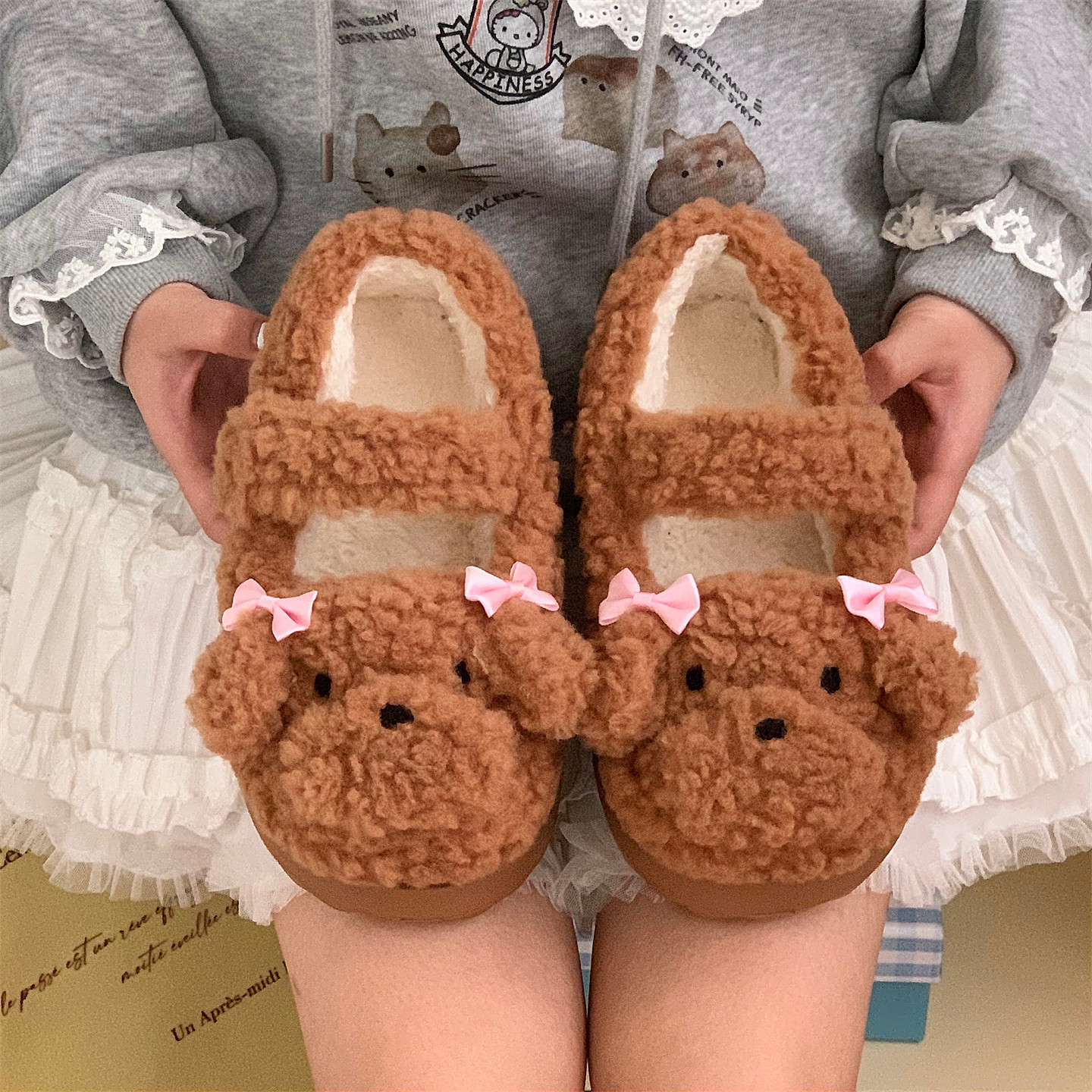 防滑厚底包跟室内家居月子保暖可爱毛毛棉鞋 孕妇棉拖鞋 女士秋冬季