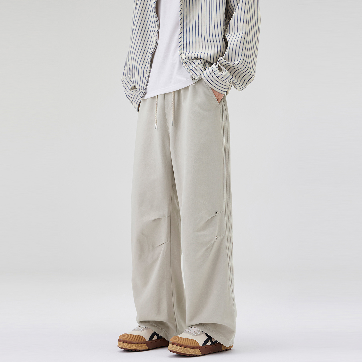 休闲显瘦卫裤 白灰色运动裤 高腰直筒宽松阔腿美式 春秋季 女2025新款