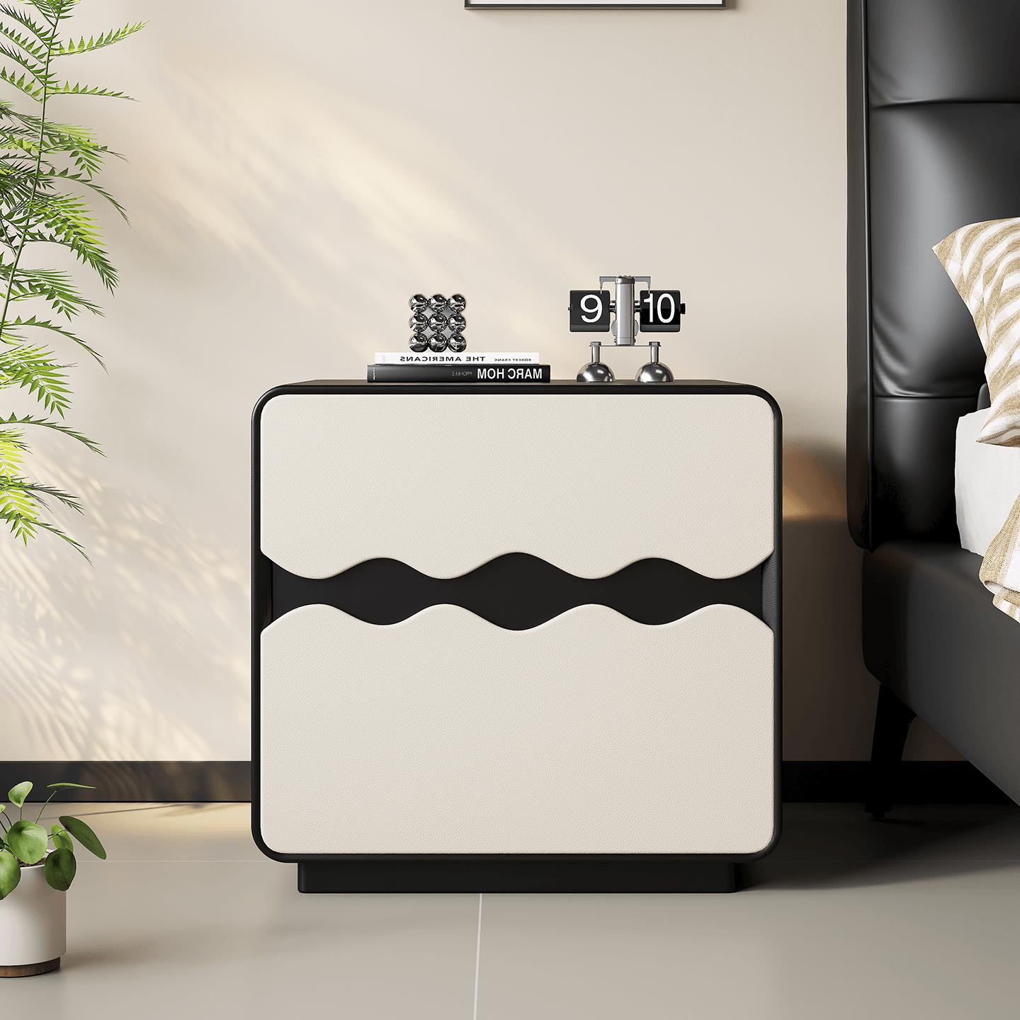 意式 创意奶油风云朵儿童房可爱床边收纳柜 极简黑色实木床头柜个性