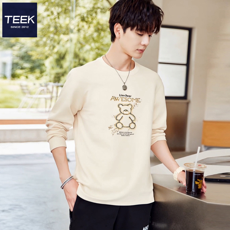 潮流帅气卡通小熊打底衫 TEEK秋季 t恤男 长袖 内搭休闲百搭秋衣 新款