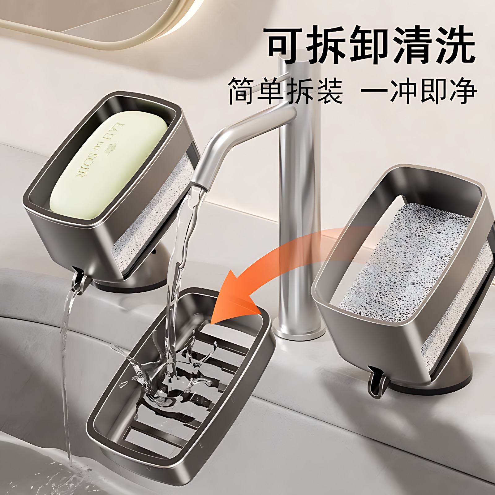 吸盘肥皂盒免打孔家用台面立式 双层卫生间不积水沥水置物架香皂盒