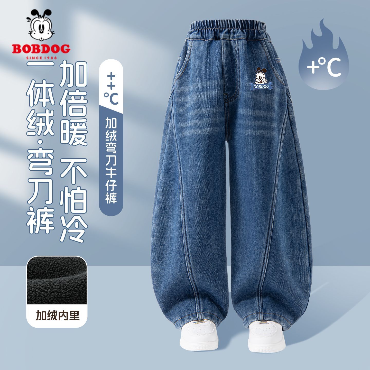 男童加绒牛仔裤 冬装 冬2025新款 儿童长裤 男孩加厚弯刀裤 巴布豆童装