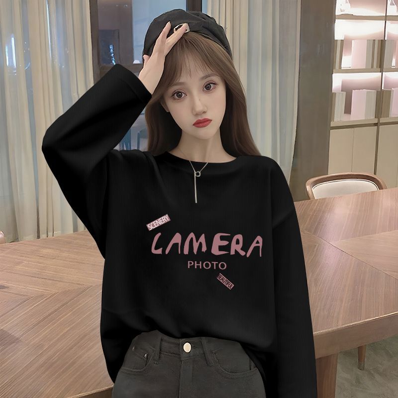 宽松印花黑色慵懒风打底衫 学生韩版 ins潮牌 t恤女春秋新款 纯棉长袖