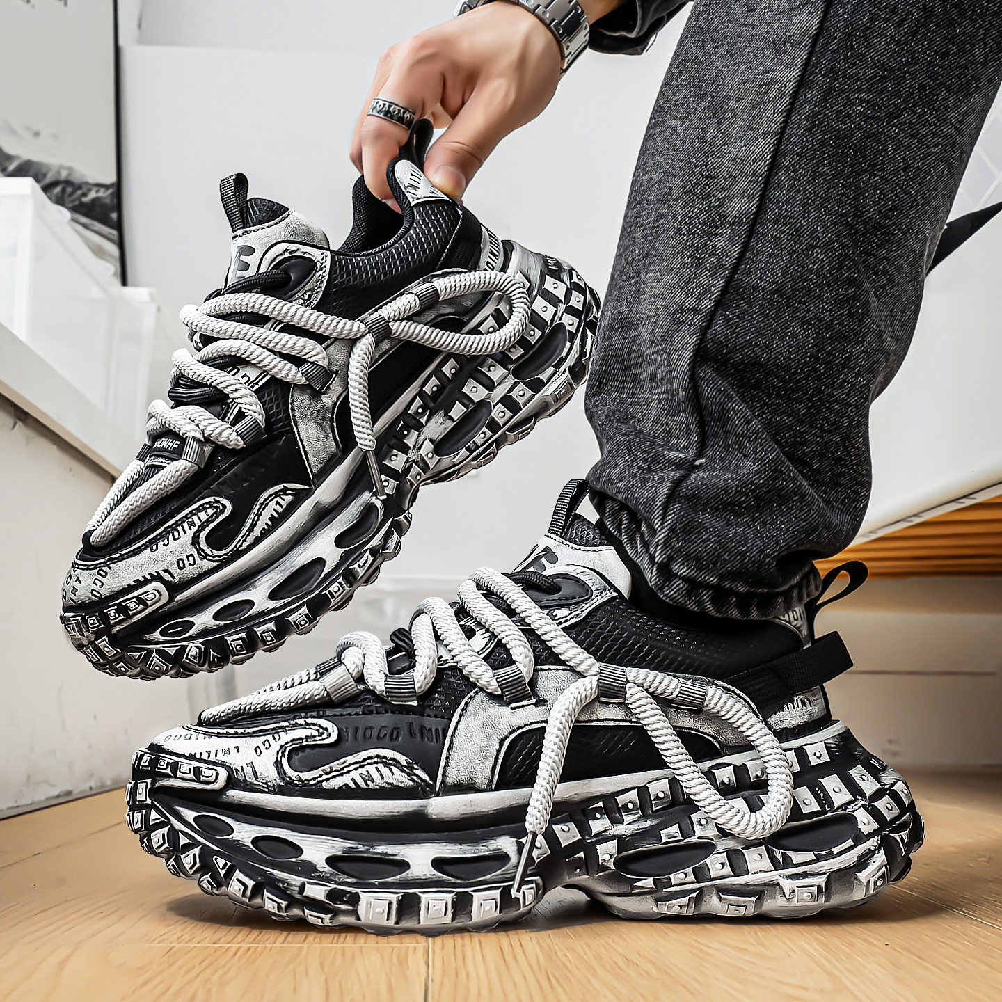 学生增高运动休闲青少年小众原创轮胎复古老爹潮鞋 欧洲站男鞋 秋季