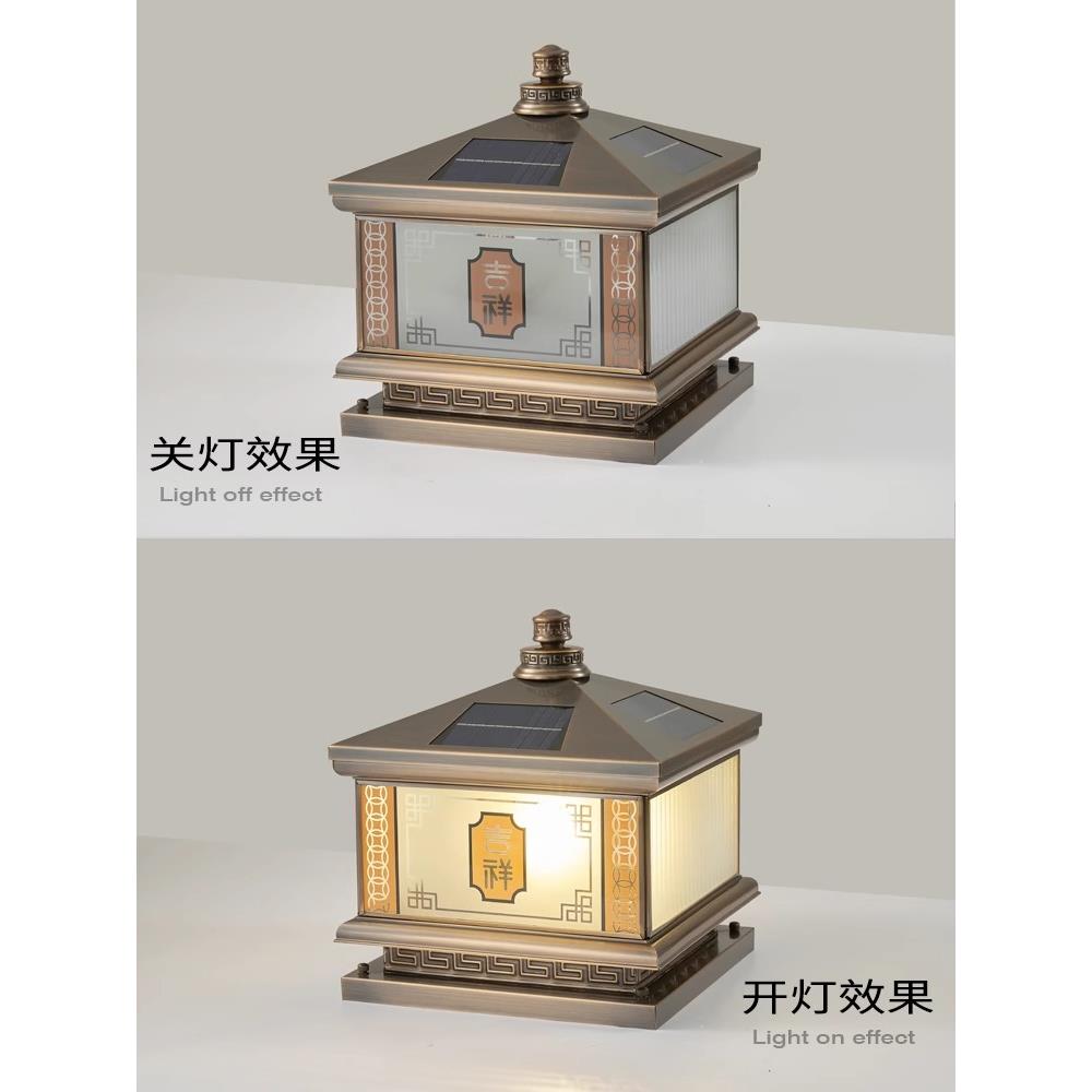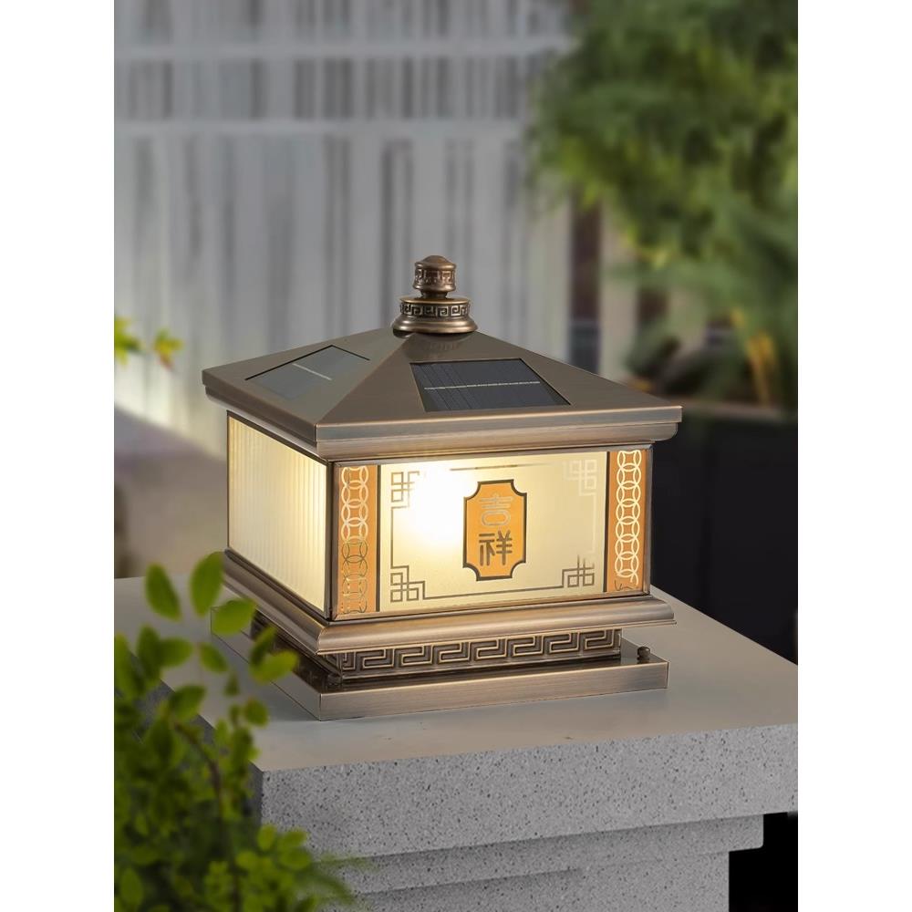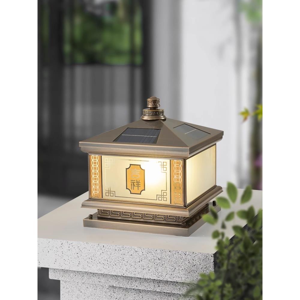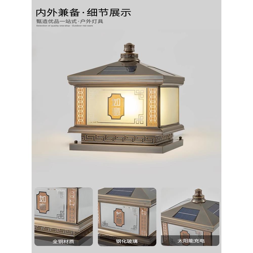 中国太阳能全铜柱灯户外防水庭院新别墅大门灯栅栏柱门柱灯