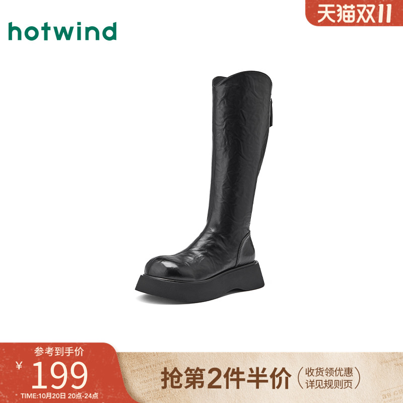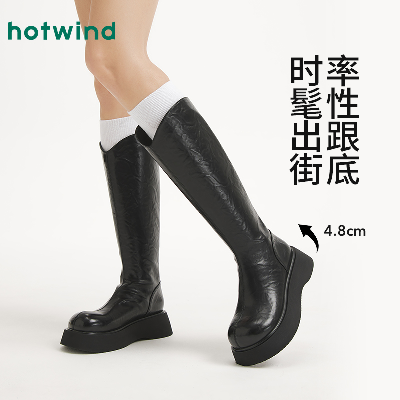 英伦风百搭黑色长靴粗跟女靴子 新款 热风厚底骑士靴女款 2025年秋季