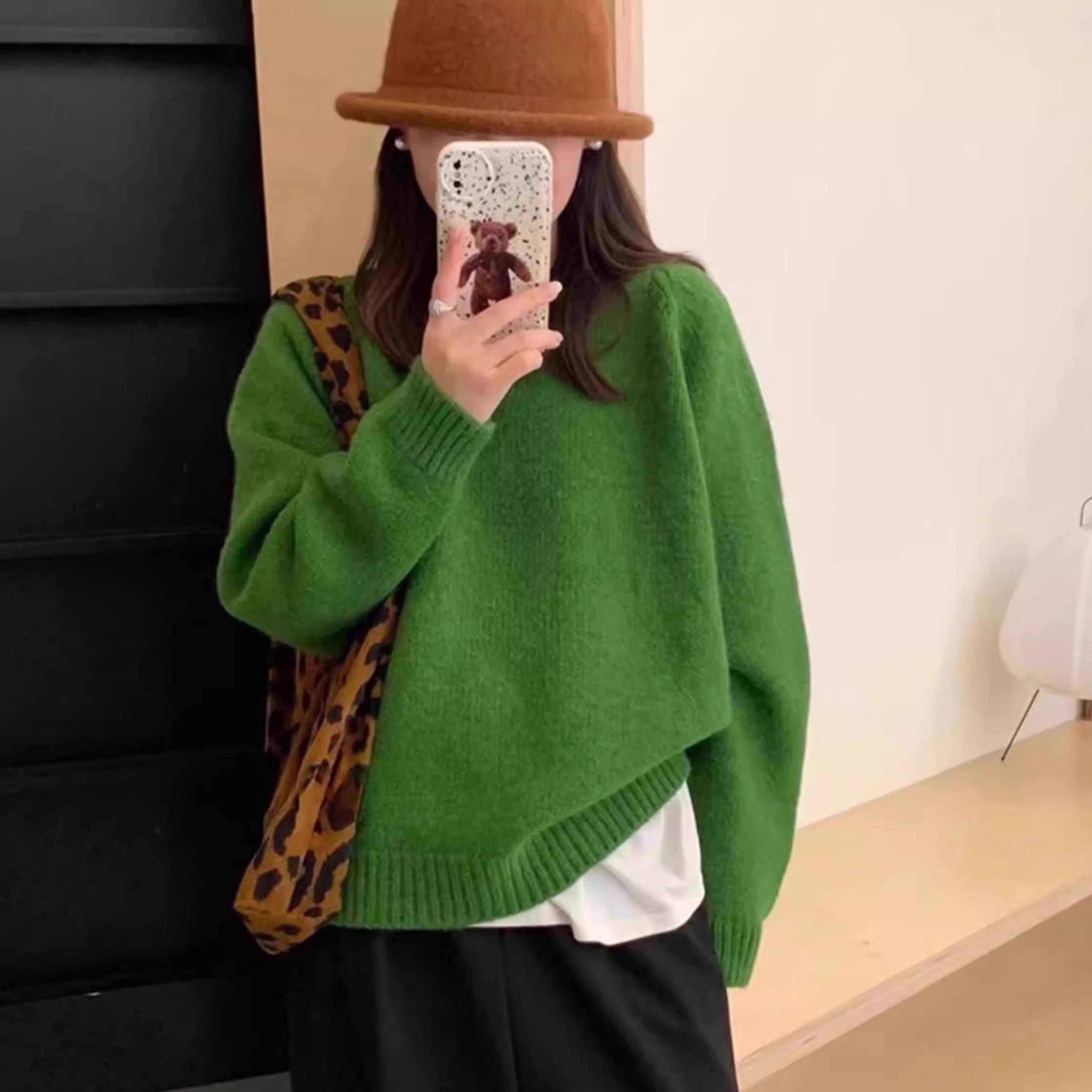 高级感上衣宽松打底针织衫 圆领100%纯山羊绒衫 女高端毛衣秋冬新款
