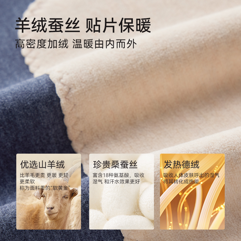 猫人无痕贴片保暖背心男士 含羊绒蚕丝德绒发热防寒上衣 内穿打底衫