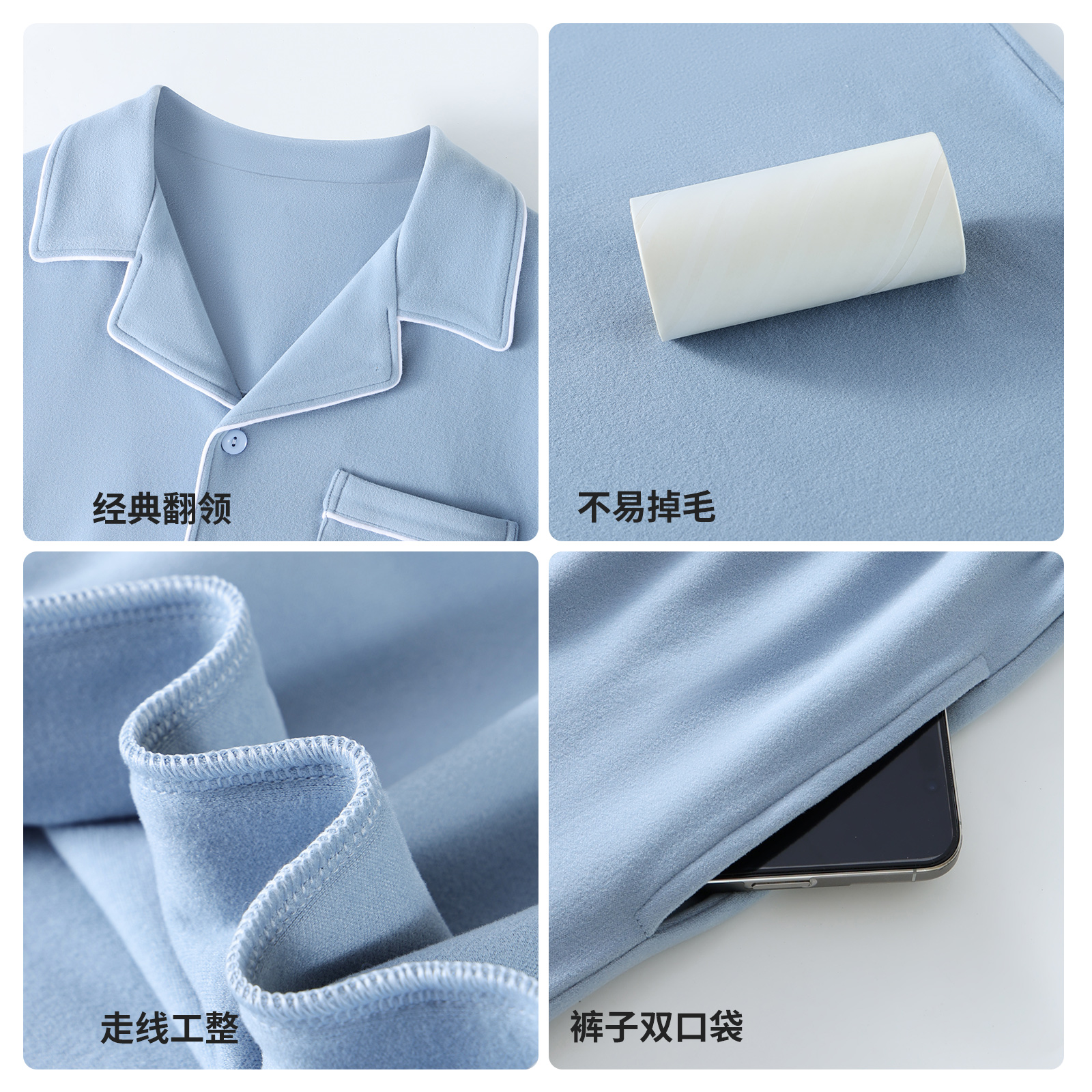 珊瑚绒保暖秋冬款 加绒加厚三层夹棉法兰绒家居服套装 冬季 睡衣男士