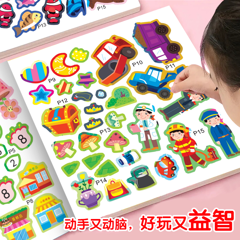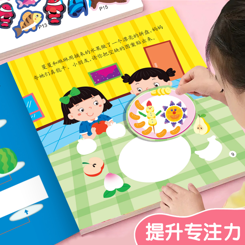专注力贴纸安静书 6岁幼儿贴贴画儿童益智全脑逻辑思维训练贴贴画益智玩具男女孩宝宝卡通粘贴书左右脑全脑潜能开发游戏玩具