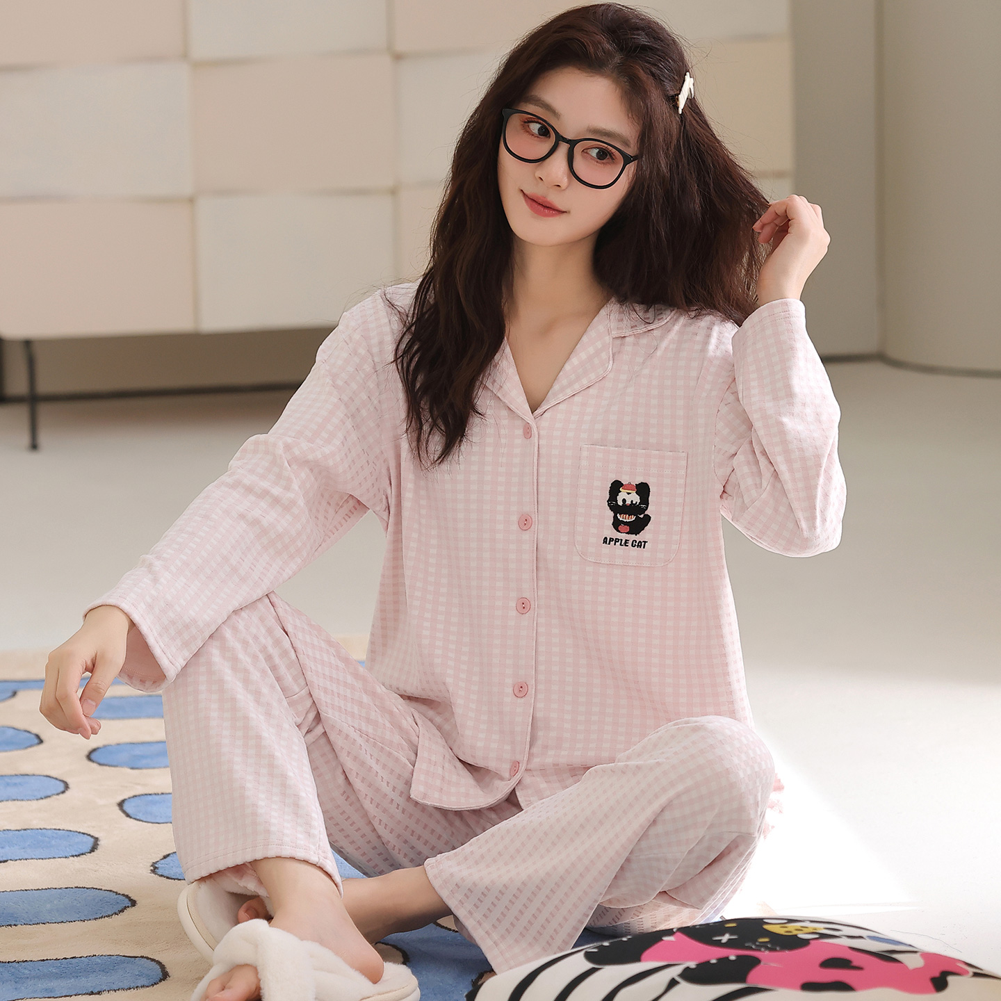 甜美女生家居服 保暖德绒粉色格子裤 卡之恋睡衣女冬季 加厚加绒长袖