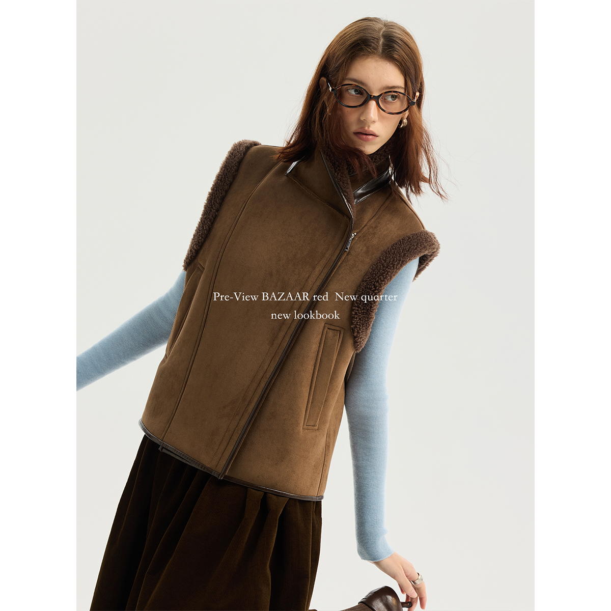 BAZAAR 简约高级感百搭休闲羊羔毛保暖加绒马甲背心 RED芭莎红