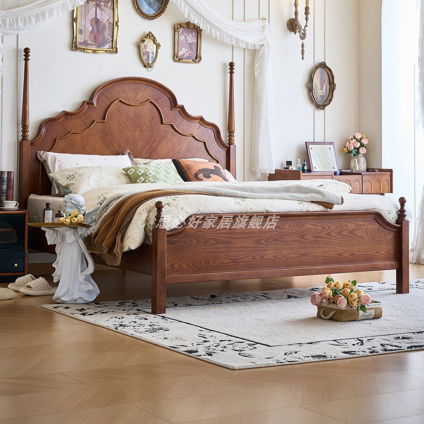 法式 复古实木床主卧高端大气中古风家具黑色全实木双人大床