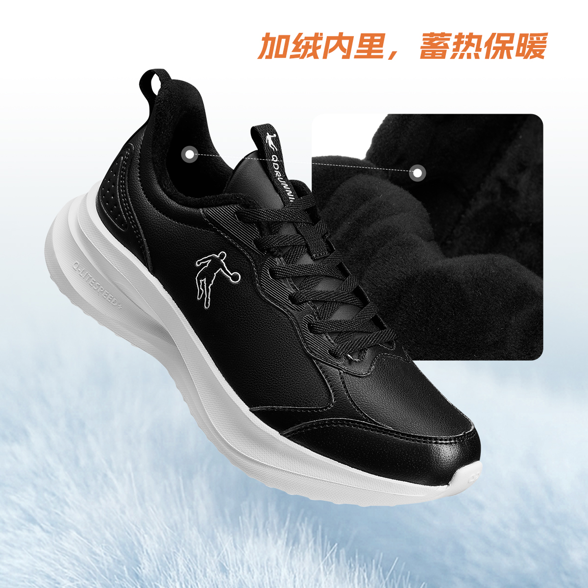 黑色运动鞋 乔丹加绒男鞋 加厚保暖棉鞋 2025秋冬季 男 皮面防水跑步鞋