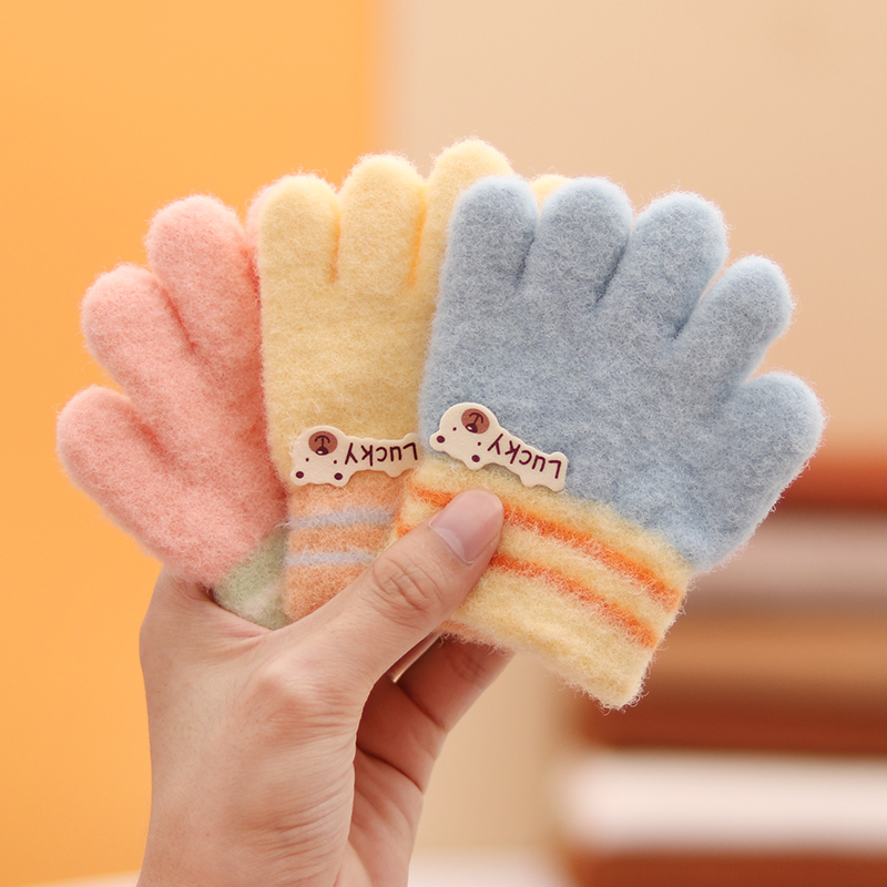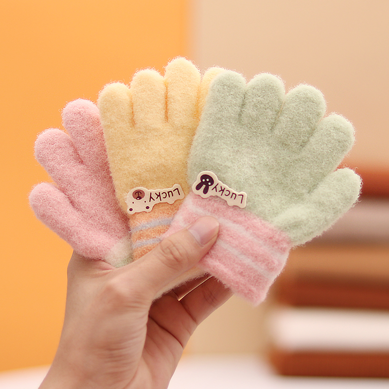 时尚 冬季 五指加厚保暖针织手套 随机1双