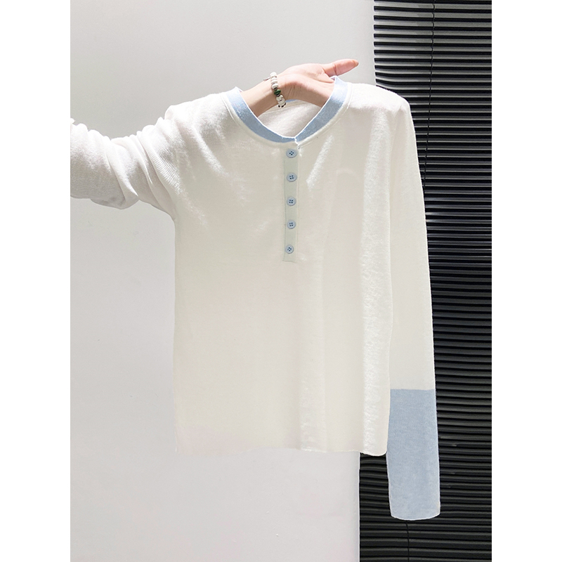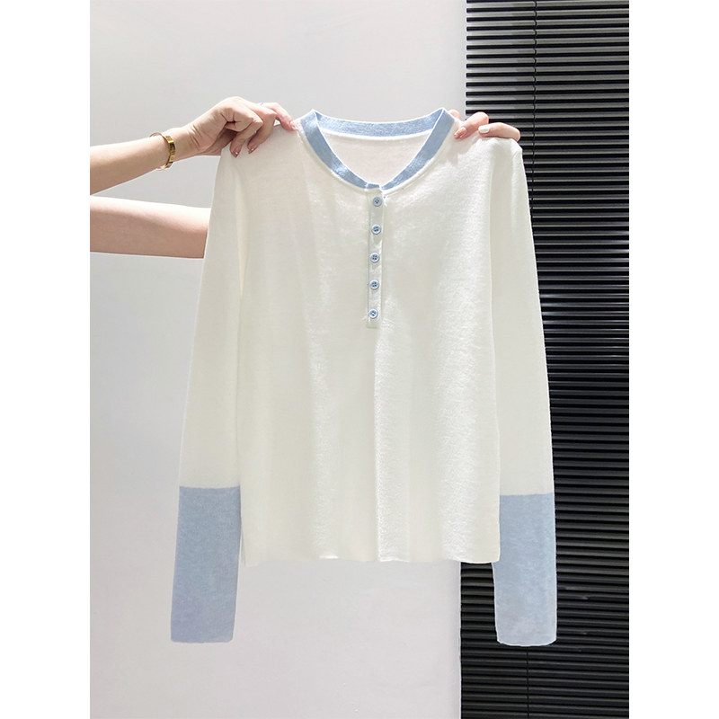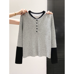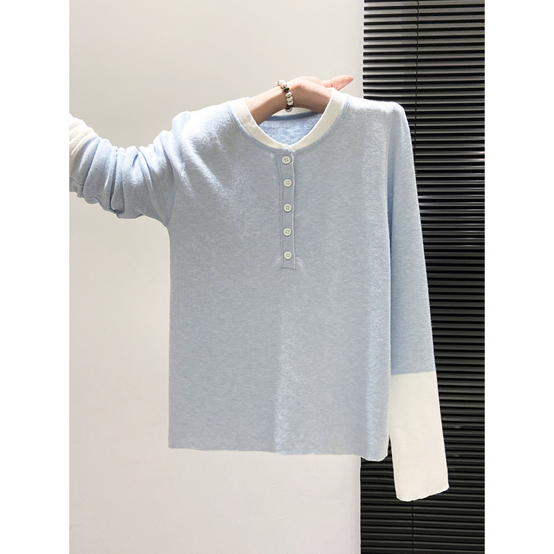 修身 简约休闲风撞色拼接长袖 新款 女秋季 显瘦软糯毛衣上衣 针织衫