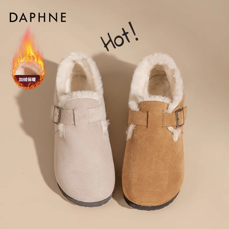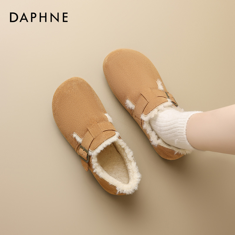 秋冬牛皮加厚保暖毛毛雪地靴棉鞋 达芙妮加绒勃肯鞋 女全包2025新款