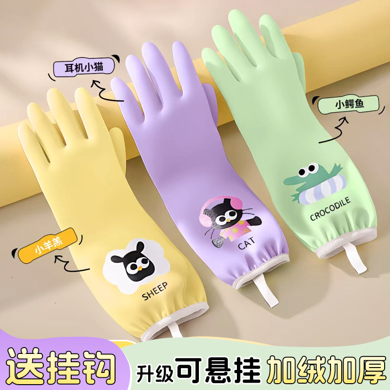 加绒洗碗手套家务厨房清洁耐用食品级专用加长加厚洗衣服做饭防水