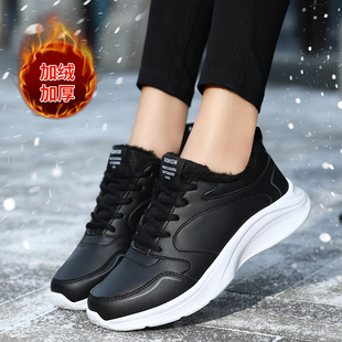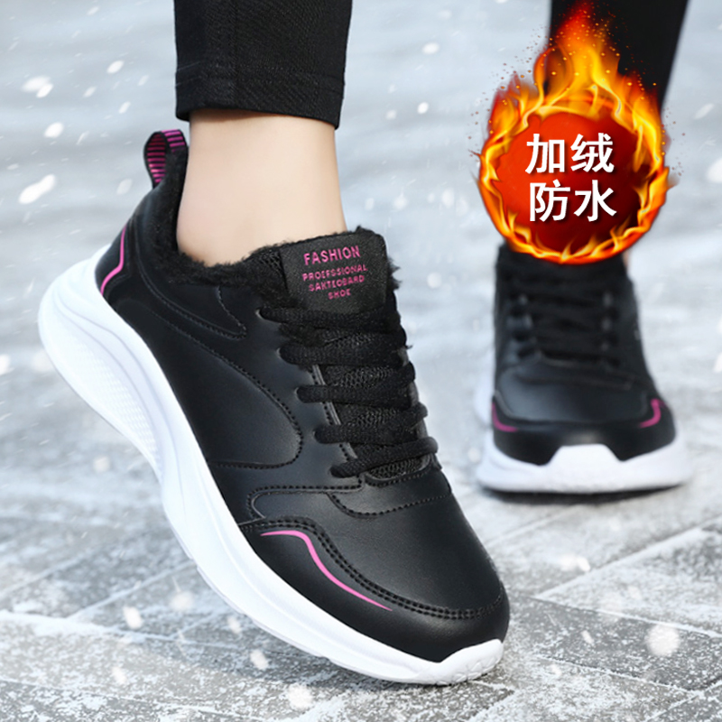季 冬季 皮面防水防滑女鞋 旅游休闲鞋 白色 妈妈加绒棉鞋 寿老人健步鞋