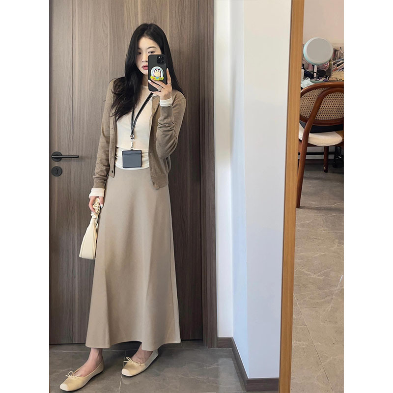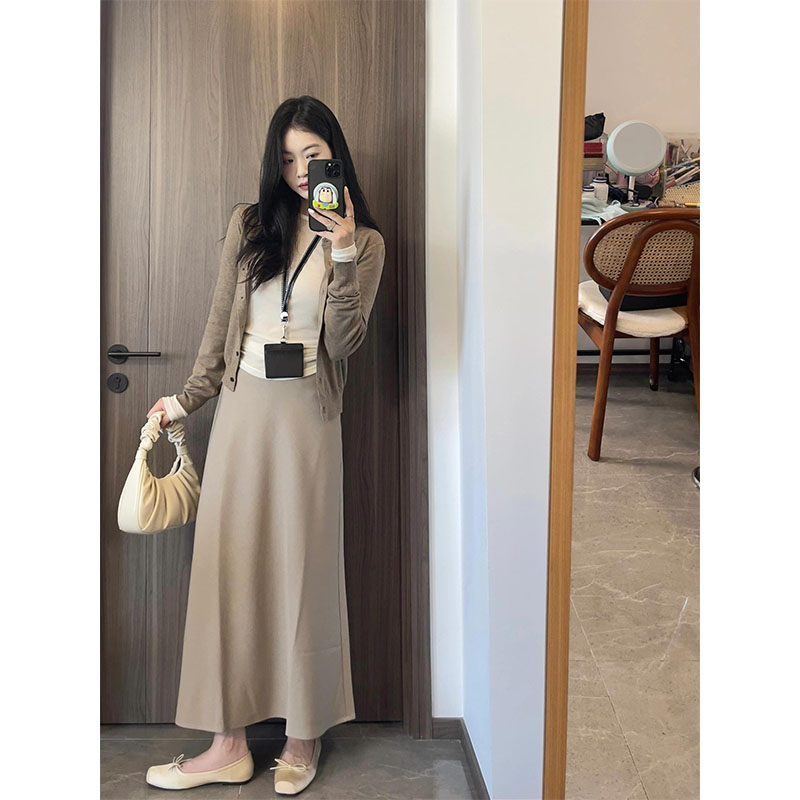 女潮 半身裙三件套装 秋冬气质一整套ootd穿搭巨好看 内搭毛衣开衫