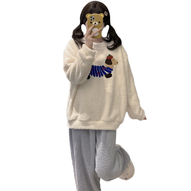 珊瑚绒冬天家居服套装 加绒加厚2025新款 秋冬季 猫人半边绒睡衣女款