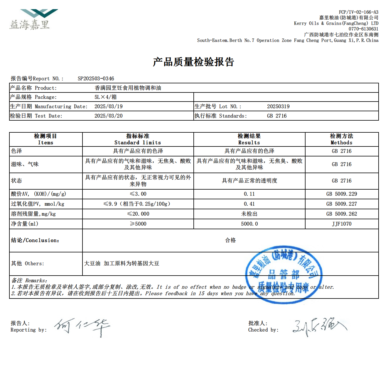 含99.8%一级大豆油新效期食用油 香满园烹饪调和油5L 工厂直销