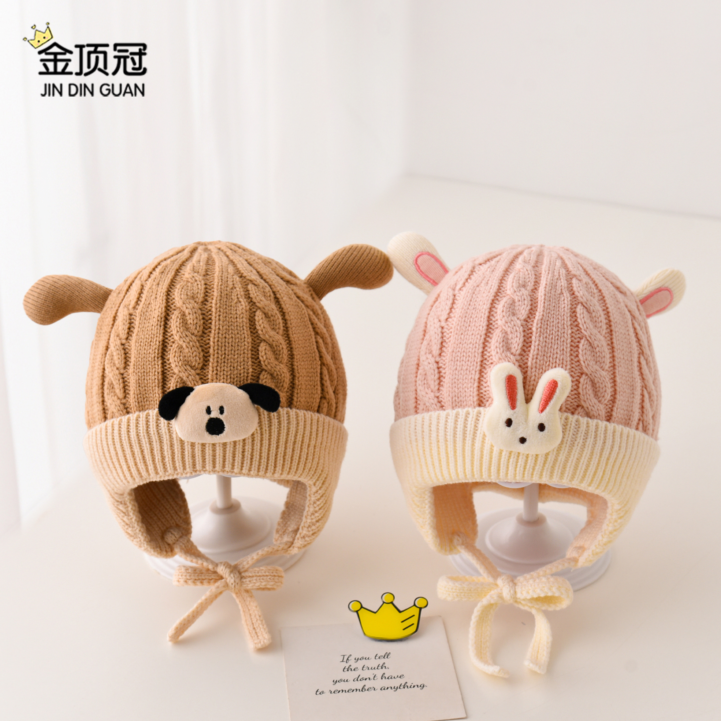 宝宝帽子秋冬季 可爱男童女婴幼儿套头防风护耳帽保暖厚 毛线帽韩版