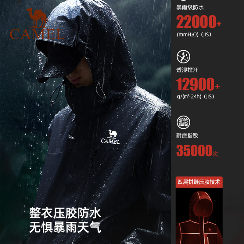 骆驼雨神追风者冲锋衣女2025新款 橙色外套户外防风防水三防登山服