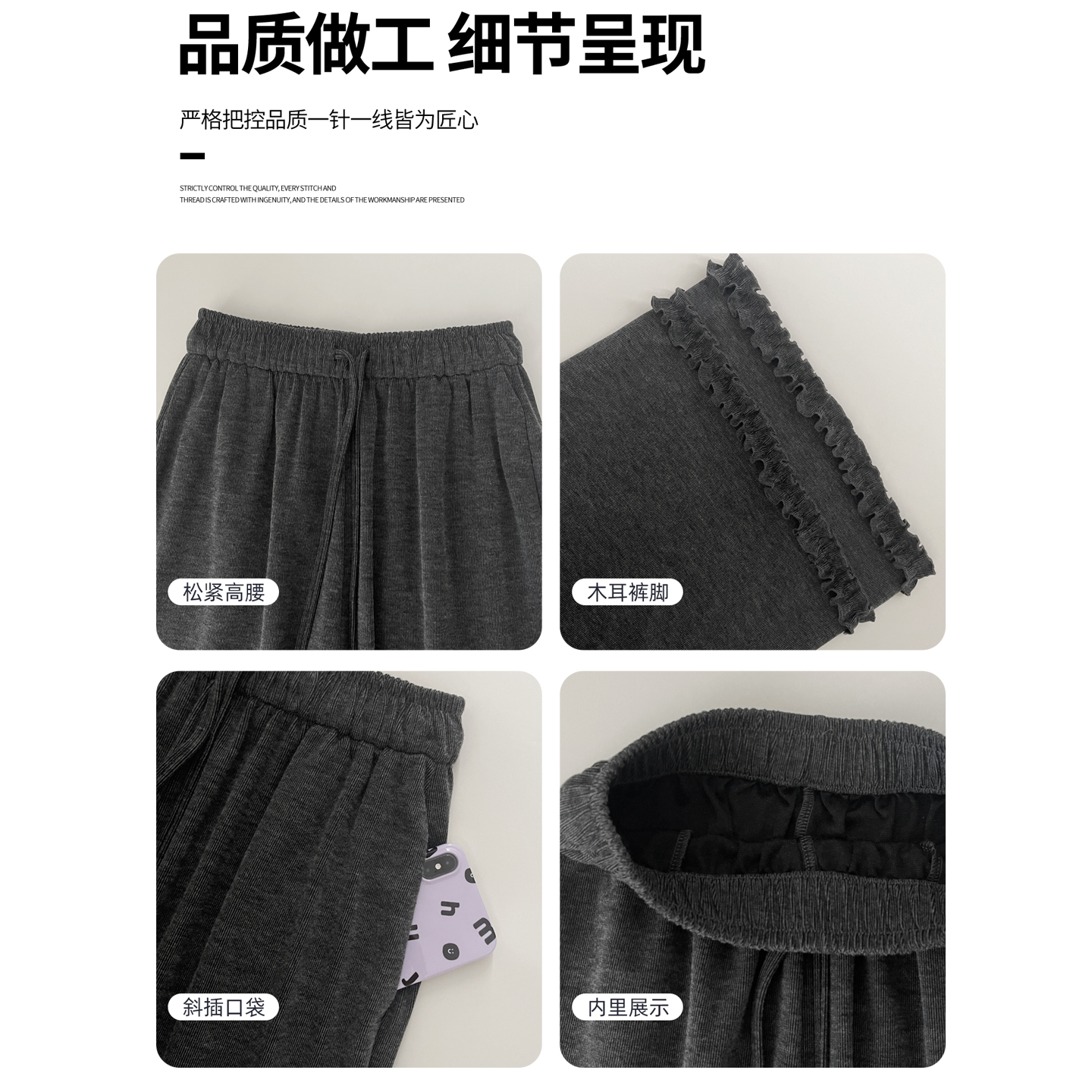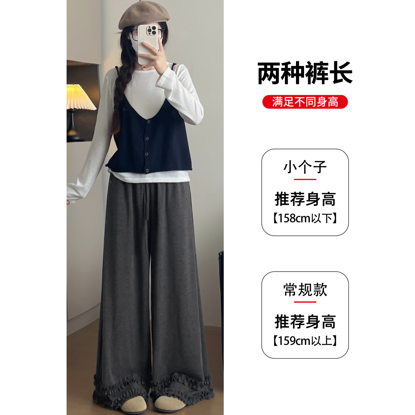 木耳边宽松高腰垂感直筒糯米阔腿裤 灰色松弛风裤 子女2025年秋新款