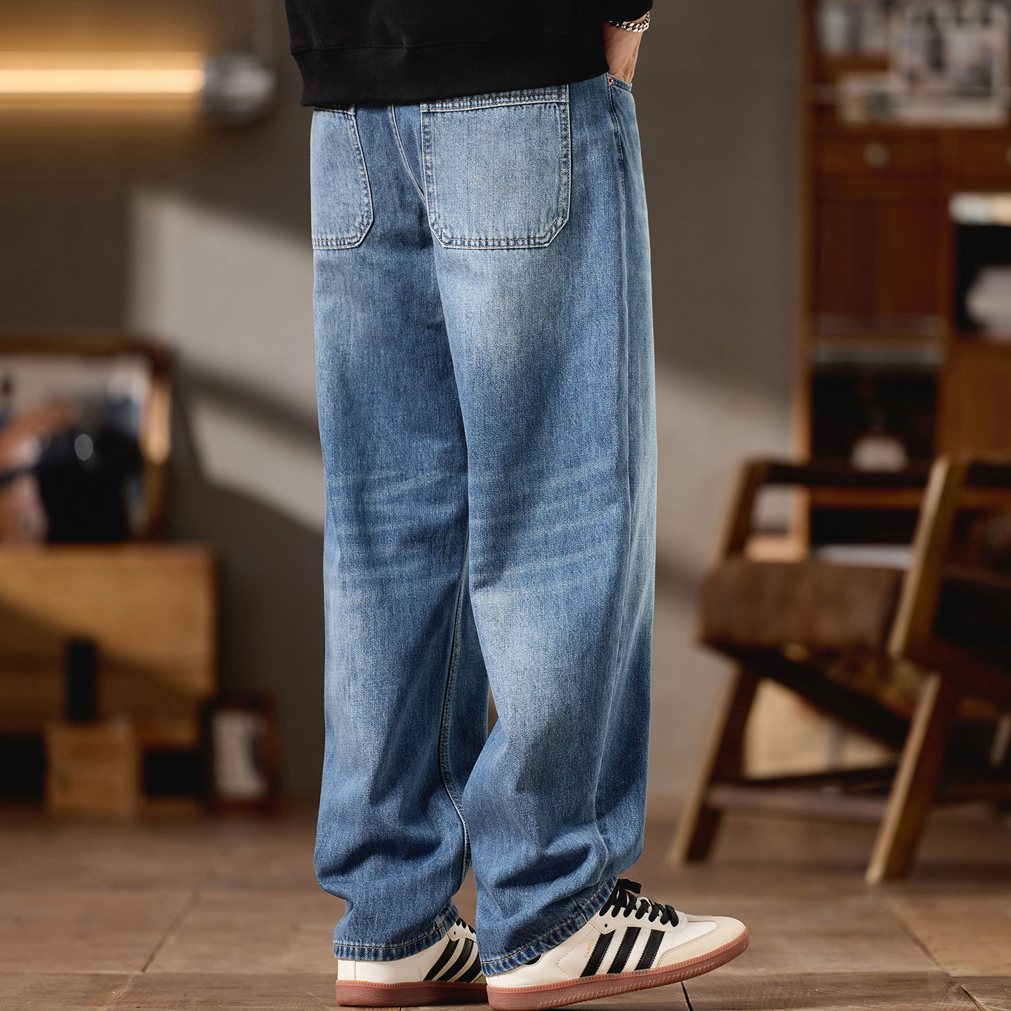 潮流复古青少年男生长裤 直筒渐变牛仔裤 子美式 宽松休闲裤 男秋冬季