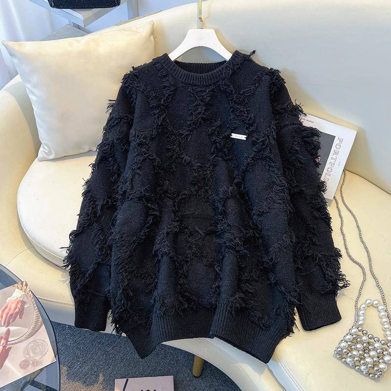1014e 胖mm时髦上衣打底针织衫 秋冬流苏毛衣女款 2025大码