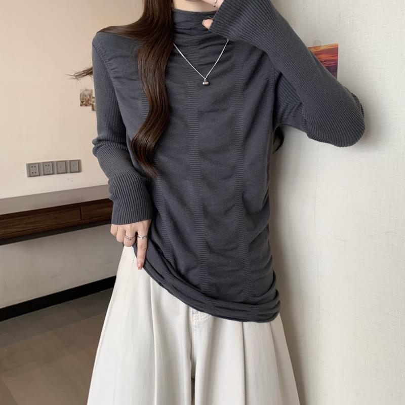 女长袖 高级感一线成衣圆领毛衣秋冬女内搭无缝修身 显瘦针织打底衫