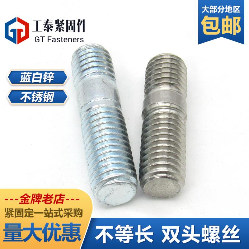 国标8.8级镀锌粗杆GB898双头螺栓M6M8M10M12不锈钢不等长双头螺柱