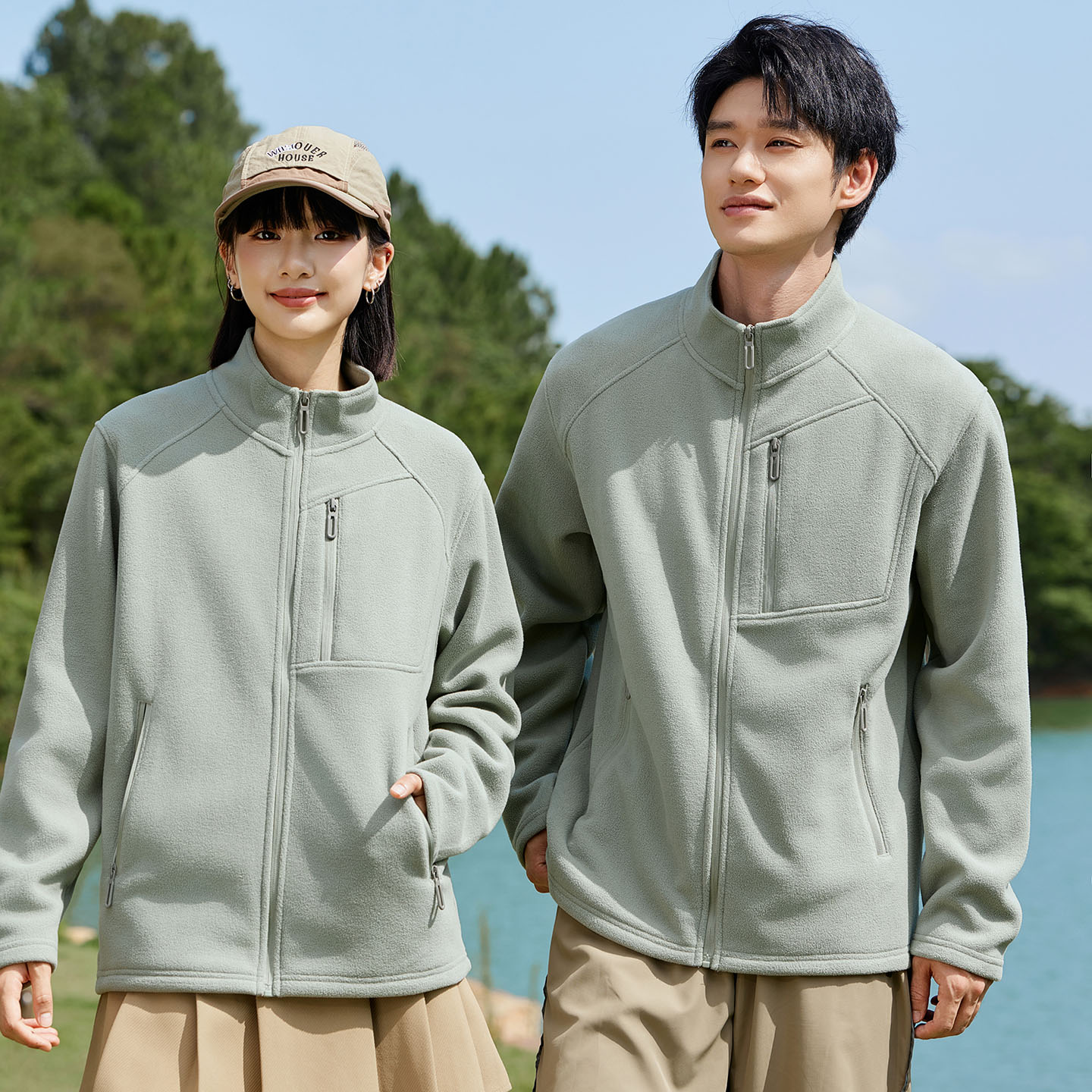 秋冬立领双面摇粒绒外套女多口袋企业加绒工作服长袖 印字LOGO 开衫