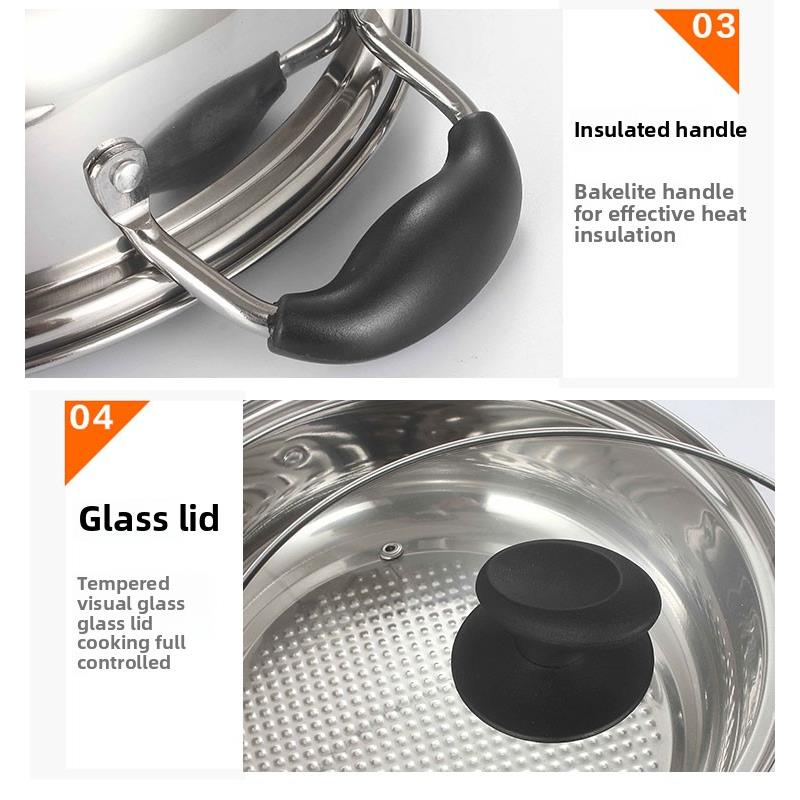 火锅电磁炉专用锅家用加厚底28不锈钢短汤锅2人小大容量30 32cm