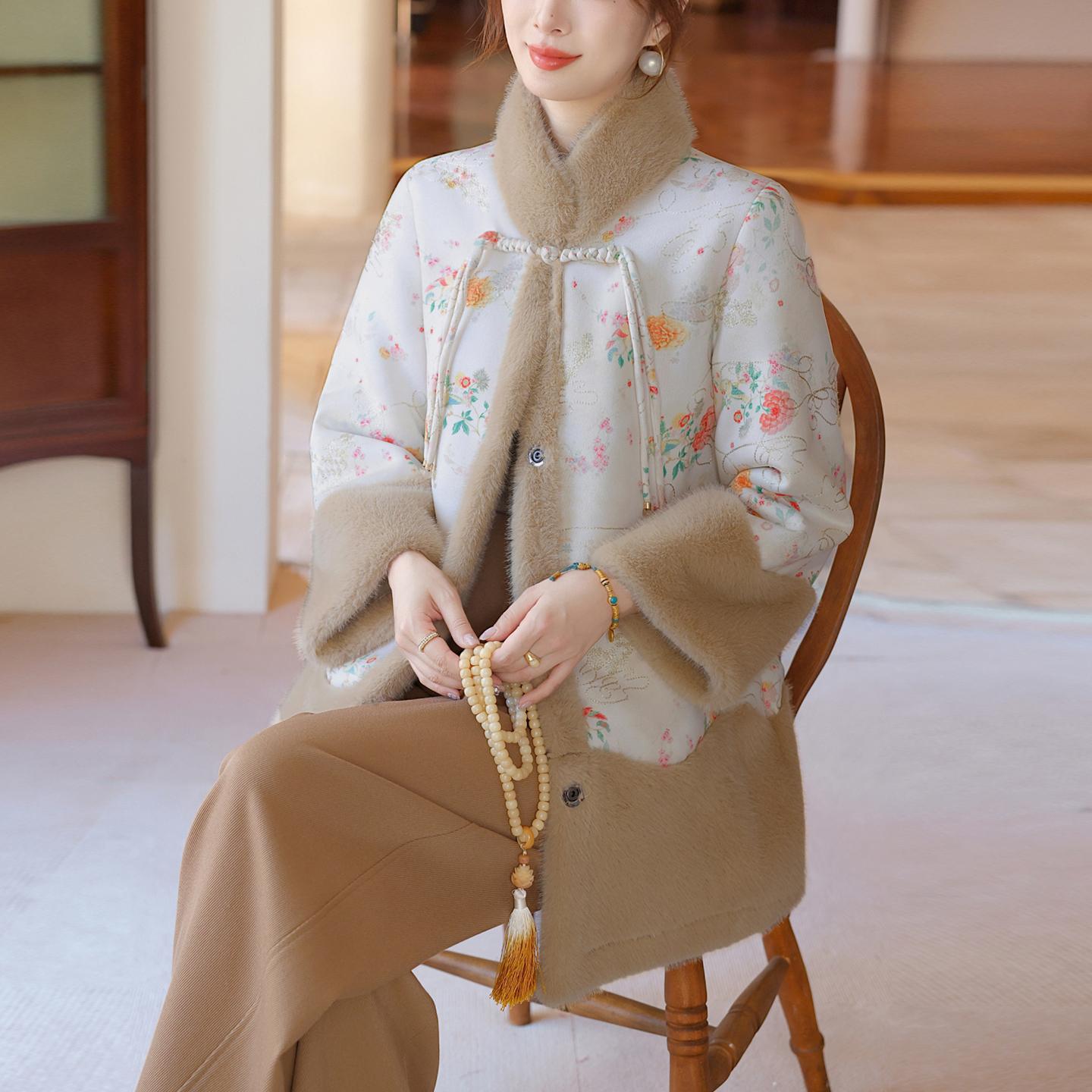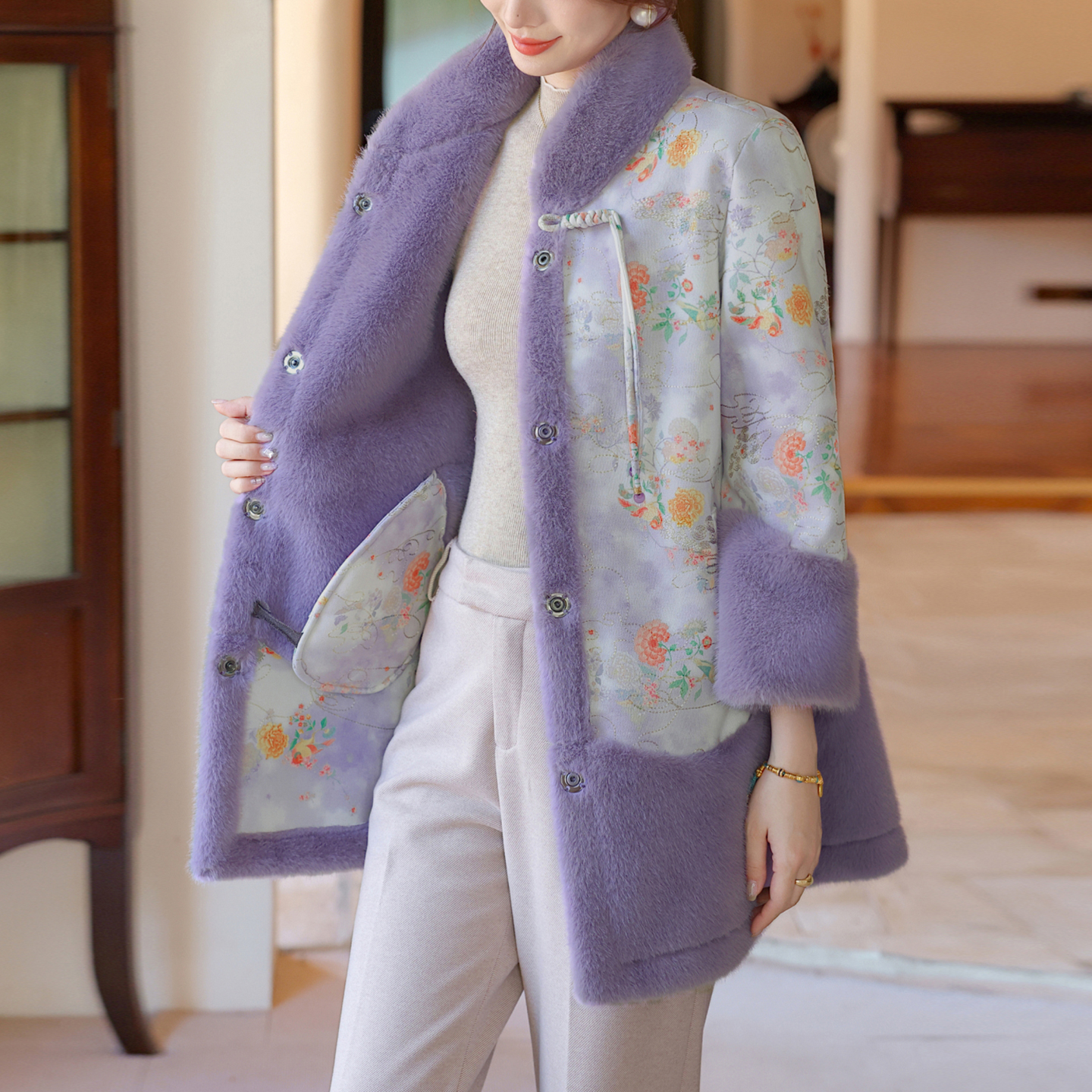 仿皮草皮毛一体外套女中年妈妈大衣中长款 新款 冬季 气质中老年女装