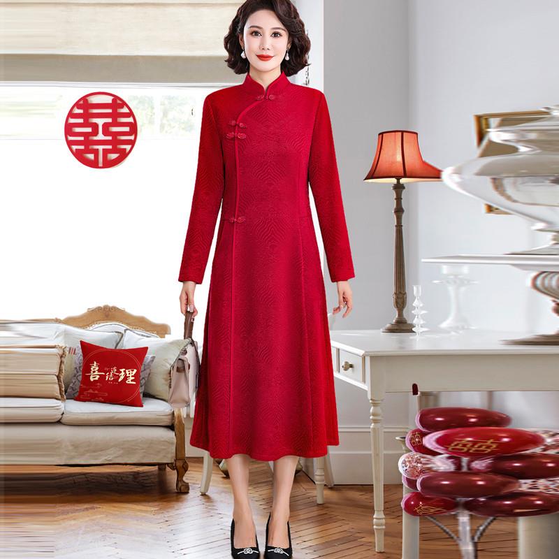 速发正品 结婚旗袍礼服中老年气质 本命妈妈红色连衣裙喜婆婆婚宴装