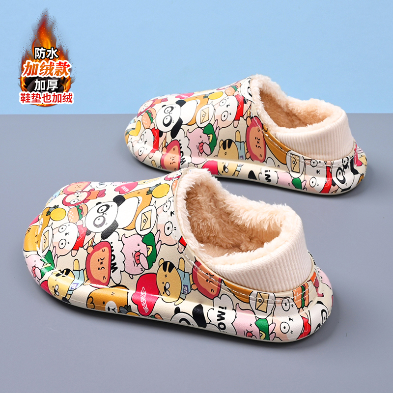 防滑防水儿童室内毛拖男孩加绒保暖 秋冬季 男童棉拖鞋 包跟2025新款