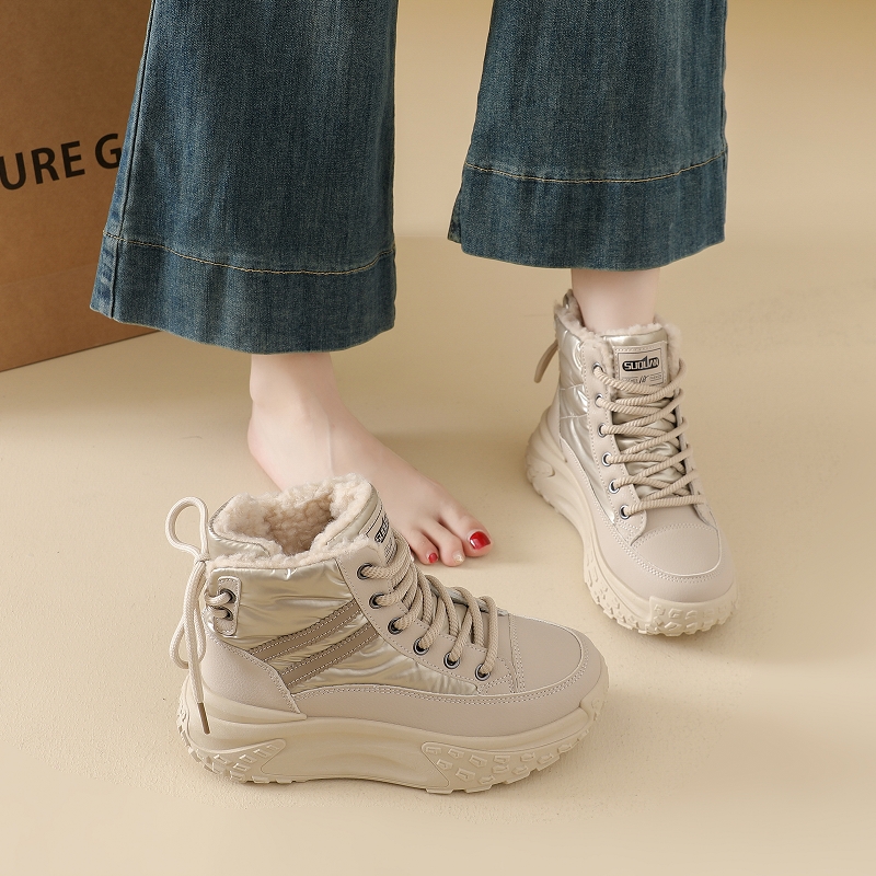 34码 松糕厚底雪地靴子女冬季 加绒加厚短靴子东北防水防滑保暖棉鞋