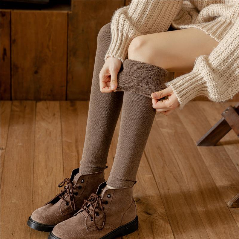 长筒靴袜子女搭配靴子小腿堆堆过膝袜春秋内搭白色大腿长筒袜羊毛