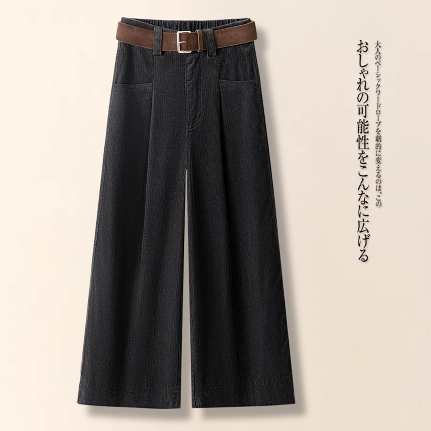 高腰宽松八分休闲直筒裤 韩版 新款 女2025年秋冬季 复古灯芯绒阔腿裤