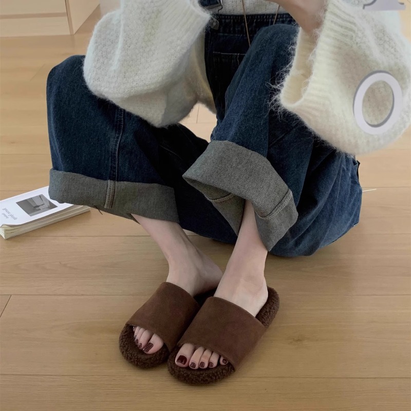 ins潮鞋 韩版 秋冬季 厚底棉拖鞋 潮 毛毛拖鞋 子春夏季 女外穿2025新款